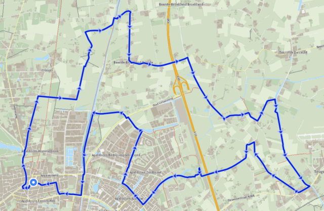 Plaatsen waar je doorheen fietst: Apeldoorn, Beemte Broekland, Teuge, Wenum Wiesel