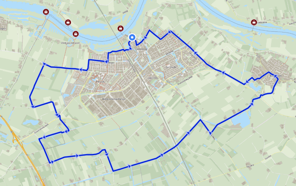 Plaatsen waar je doorheen fietst: Beesd, Beusichem, Buurmalsen, Culemborg