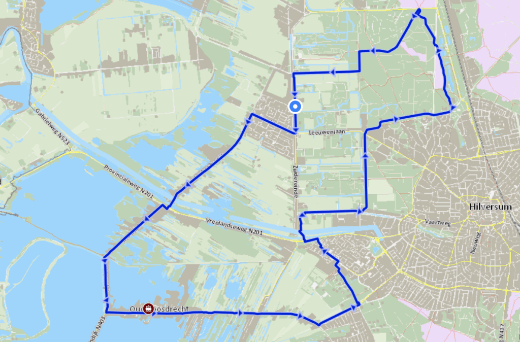 Plaatsen waar je doorheen fietst: 's-Graveland, Bussum, Hilversum, Kortenhoef, Loosdrecht