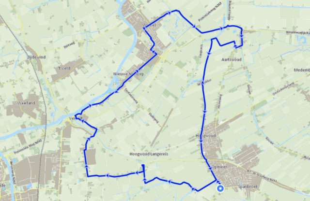 Plaatsen waar je doorheen fietst: Aartswoud, Heerhugowaard, Hoogwoud, Middenmeer, Nieuwe Niedorp, Opmeer, Oude Niedorp, Spanbroek, Winkel