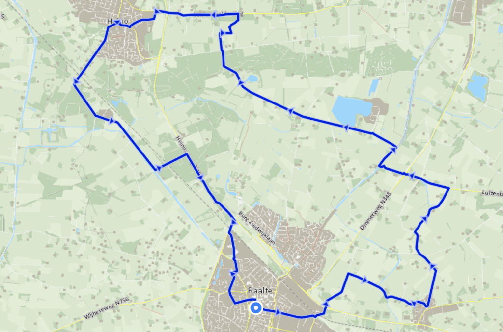 Plaatsen waar je doorheen fietst: Heino, Luttenberg, Mariënheem, Raalte, Wijhe