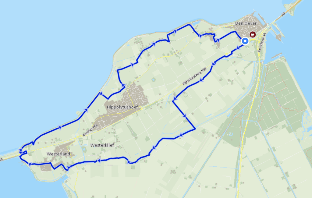 Plaatsen waar je doorheen fietst: Den Oever, Hippolytushoef, Slootdorp, Westerland