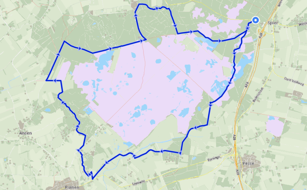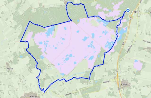 **Soort route:** Natuur, autoluw **Richting:** Met de klok mee Nationaal Park Dwingelderveld is het grootste natte heidegebied van West-Europa. Hier fiets je langs natte laagten en hoge zandruggen. In een oud cultuurlandschap met heide, vennen, bossen en akkers is veel ruimte voor planten en dieren. De beheerders zetten schapen en runderen in voor het begrazen van de natuurterreinen, waaronder Simmentalers en Blonde d'Aquitaines. Ook zijn er twee schaapskudden die met een herder rondlopen. Zo blijft de heide in stand. De route begint bij de parkeerplaats van bezoekerscentrum De Boslounge, waar je een kop koffie of thee kunt drinken. Via het Commissaris Cramerpad fiets je over het Dwingelderveld, met bossen, open heide, vennetjes en schapen. Vroeger plagden boeren de heide. Ze verwijderden de bovenste grondlaag met begroeiing en voegden dit samen met schapenmest. Het mengsel gebruikten ze voor de bemesting van hun akkers. Toen de boeren eenmaal kunstmest gingen gebruiken, verruigde de heide. Eind jaren zeventig pakten natuurbeheerders het plaggen weer op. Aan de rechterhand zie je Vogelkijkhut Holtveen staan, met een fraai uitzicht over het natte gebied. Later fiets je langs Buffelboerderij Luth, waar mozzarella en waterbuffelkaas worden gemaakt. Even gaat de route door een boerenlandschap, met boerderijen en Molen de Zaandplatte. Later volgen bossen. Een klein stukje van de route af vind je Vogelkijkhut Davidsplassen, ook weer met een fraai uitzicht. Een gravelpad gaat verder door het Dwingelderveld en passeert een radiotelescoop. Om de hoek kun je mooi picknicken. Later slinger je door bossen en langs mooie vennen. Ook passeer je schaapskooi Achter ’t Zaand. De schapen zorgen ervoor dat het heideveld niet dichtgroeit met grassen en jonge boompjes. **Adresjes onderweg:** Kijk op [Vrienden op de Fiets](https://www.vriendenopdefiets.nl) voor een logeeradres in de buurt. - [De Boslounge (Spier)](https://www.boslounge.nl) - [Buffelboerderij Luth (Eursinge)](https://www.facebook.com/buffelboerderijluth) - [Bij Olde Posthuus (Anholt)](https://www.restaurantoldeposthuus.nl) - [Theehuuys Anserdennen (Ansen)](https://www.theehuys-anserdennen.nl) - [De Kleine Koffiestop (Dwingeloo)](https://www.facebook.com/koffieaanhetanserpad) Routemaker: [Drentse Fietsers](https://www.drentsefietsers.nl) Foto’s: Karin Broekhuijsen, Drenthe Marketing