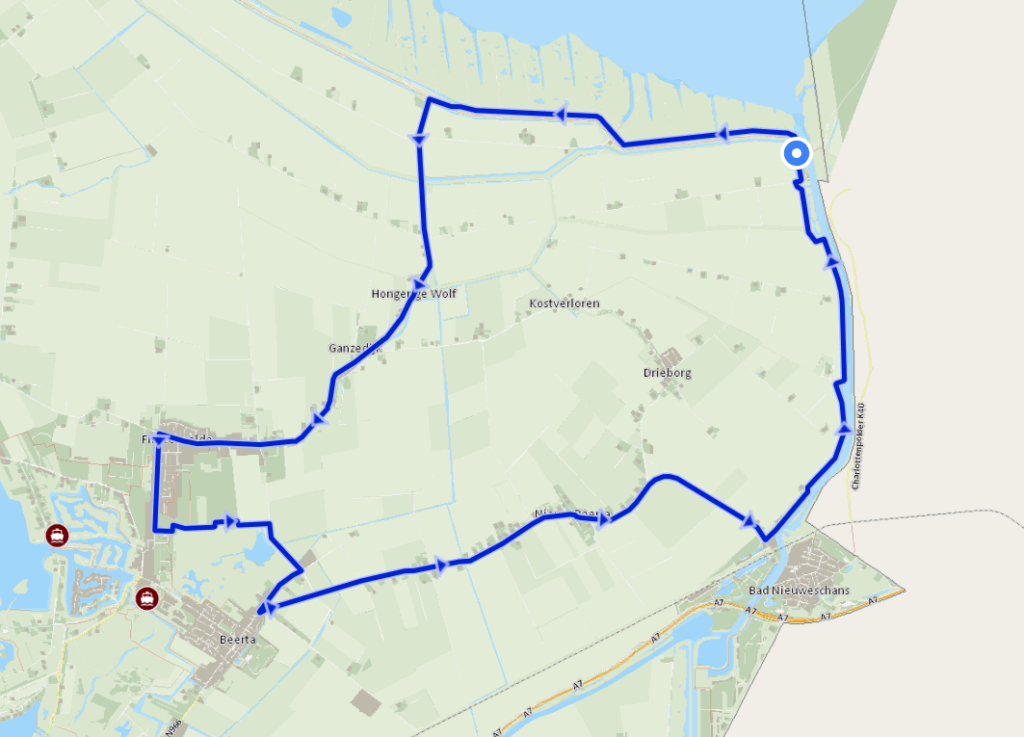 Plaatsen waar je doorheen fietst: Bad Nieuweschans, Beerta, Drieborg, Finsterwolde, Nieuw-Beerta