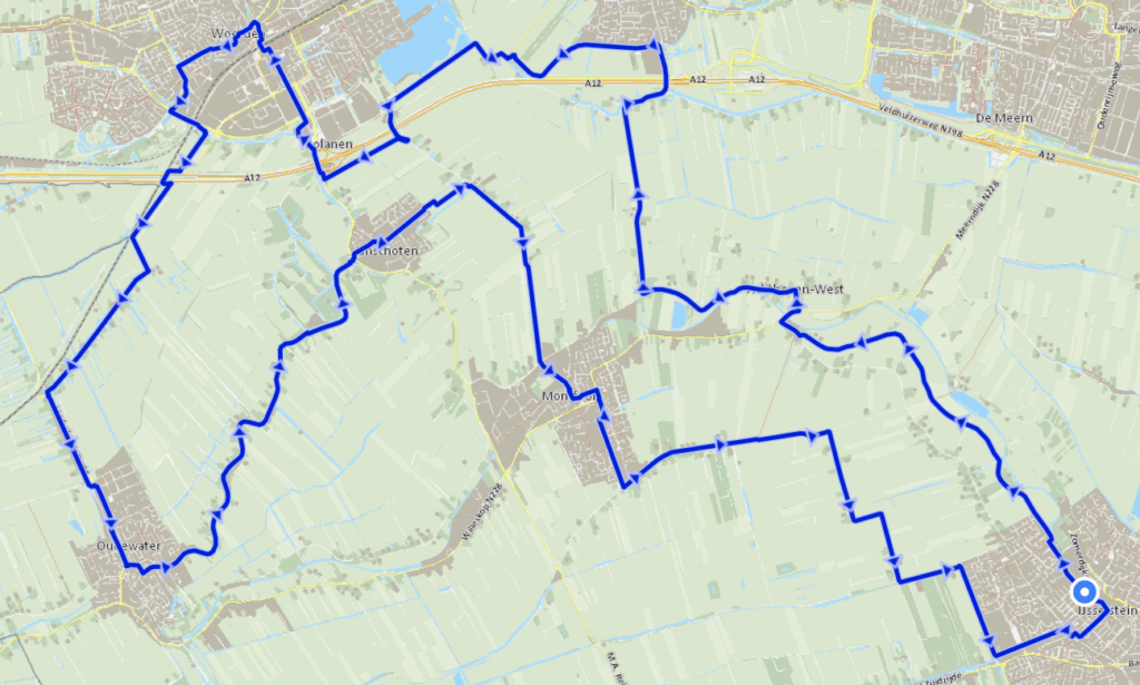 Plaatsen waar je doorheen fietst: Harmelen, IJsselstein, Linschoten, Montfoort, Oudewater, Papekop, Snelrewaard, Woerden