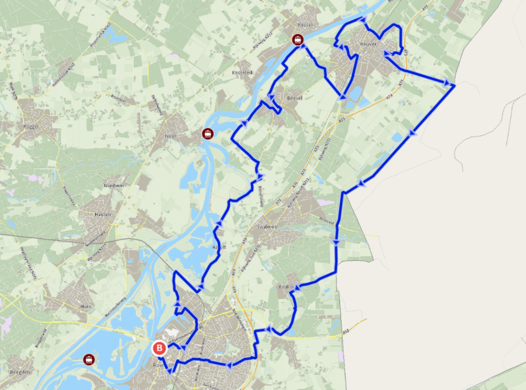 Plaatsen waar je doorheen fietst: Beesel, Reuver, Roermond, Swalmen